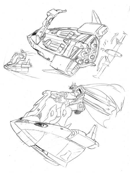 『ストーリーの流れで突如作ったメカです。デザインの時に「俺は大河原邦男だ!、俺は大河原邦男だ!」と自分に言い聞かせながら描きました。ほぼ演出に必要なラインしか存在しないシンプルなものです(笑)』