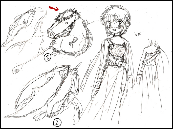 まあ右はミュズの服装のラフでそれほど変わっちゃいないが、問題は左上の