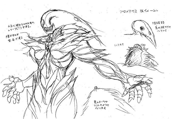さて、画像は「秘密基地〜」終了記念「プロメテウスの原案」だあ!…最初はオッサンの予定だったのですな。なんで少年になっちゃったかというと、最初にからむ相手がフウ君だったから。けっこう、こうした事情でマンガって変化する、まさに「生き物」なわけですな。