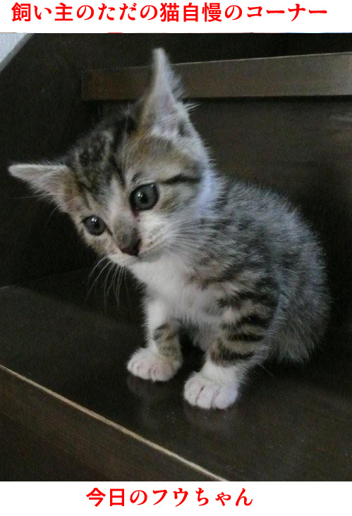 名前はフウちゃん。せっかくなので自作のキャラから名前をとろう、ということになりまして、でもひろった時あまりに小さく、お医者さんに「まだ男の子か女の子か判らない」と、言われたので、じゃあどっちでもいい名前を…ってつけました。