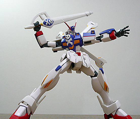 でも画像はいきなり「ロボット魂クロスボーンガンダムX−3」だ!(笑)いや、最近発売されたもので。いつもながら大胆なポーズが決まりますな、このシリーズは。個人的に、「ロボ魂」は気に入ったアイテムが多いので応援しております!この調子で、木星圏MSなども、出していただけると、うれしいな、っと!(やはり敵キャラあってのガンダムでしょう!)せっかくなので3体そろい踏み、記念写真などを…ああ、こらX-2!もうちょっと左に寄らないと顔が隠れちゃうよ!