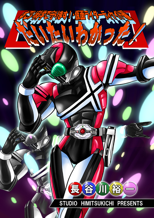 彩色は最近「レンスト」や「デジモン」のカードでイラストレーターとして活躍中の有賀悠羽揮による、本格派仕様!(線画はもちろん自分で描きましたが)わがスタジオ秘密基地のこの夏の出版物は、このディケイド本、
