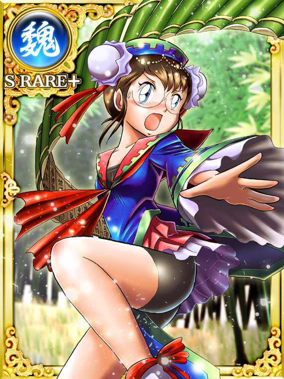 アプリのゲーム、「大乱戦!!!三国志バトル」の私のイラストカードがついに!2月1日より配信開始!(すぎとるじゃありませんか!ぎゃあ!)名前を高城公主と申す(←名前じゃないよね、これ。役職名。残ってないんだわ。昔の女の子の名前)曹操の娘さん!なんでも、勉強好きだったとかで、打ち合わせの際「じゃあ、メガネっ娘にしていいですか〜」と、主張したところ、OK!が出ましたのでこのように!(笑 いや、まだないけどさ。この頃は、メガネ)最初はスパッツ(状のもの)は履いてなかったんですが、ちょいとお尻が見えすぎであるとかいうことで(笑)追加。う〜ん、おしい!何でもレアカードらしいですが、アプリのゲームでお楽しみの方は、挑戦してみてくだされ