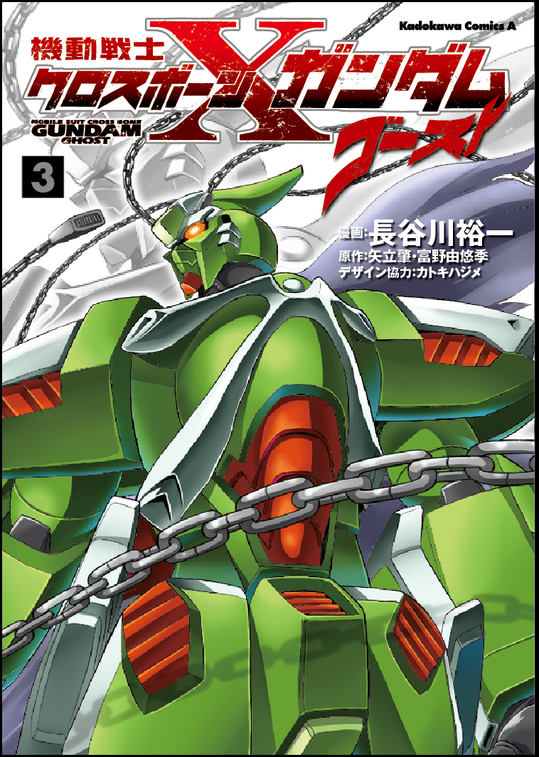 じゃん!「機動戦士クロスボーン・ガンダム ゴースト」3巻!2月25日発売!よろしく!1、2巻のモノクロームな雰囲気から一転しての、このカラフルな表紙が目印!現在、連載のページをすこぅし増やして、ペースUPを図っているので、次の4巻はいつもより、間を開けないで、お届けできると思います。