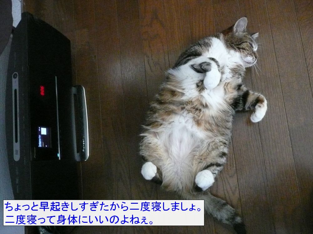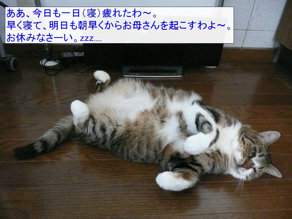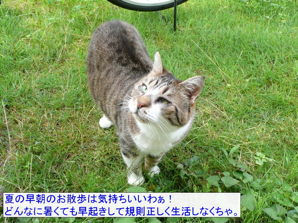 さて右側は「フウちゃんの夏の1日」です。"ある"1日じゃないですぞ。ほぼ毎日このように規則正しく生活しとります(笑)。まあ夏のにゃんこは、だいたいこんな感じか。うらやましいですな(笑)