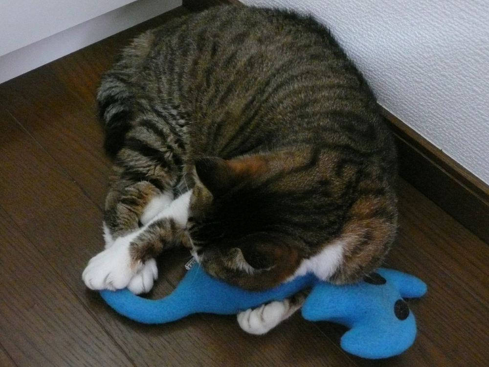 ではなく、ネコ型またたび入りおもちゃ、と今日のフウちゃん。最近フウちゃんは、このおもちゃが大変気に入ってるもので(笑)