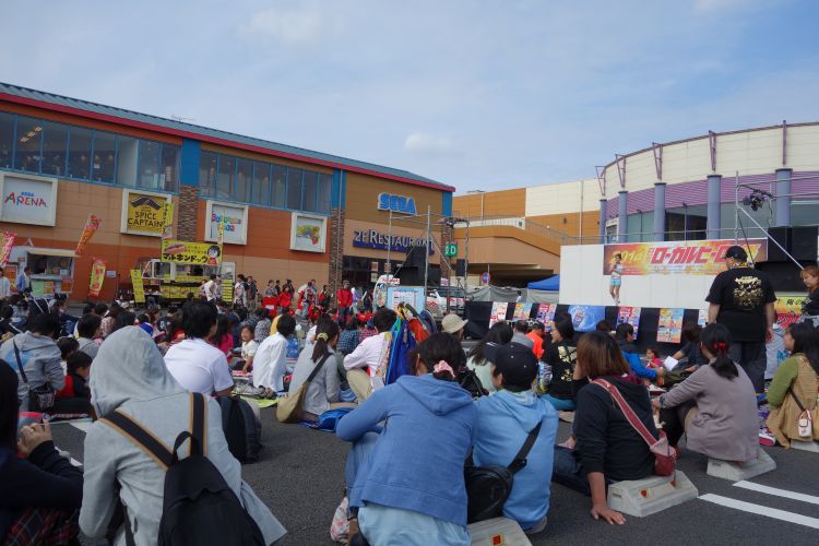 台風が心配されていたのに当日は薄曇りで風も無い屋外のイベントとしてはかなり恵まれた天候になりました。朝10:00から始まったオープニングにすでにこれだけのお客さんが! 沖縄のハルサーエイカーはショーが中止になったのですが、彼らが沖縄で台風を食い止めててくれたとしか思えません。