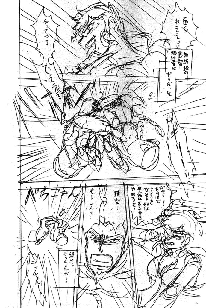 …え~と、と、それでなんで切っちゃったかというと、ネーム中に「でたらめなパロディとはいえ、人気キャラの死ぬシーンをギャグにするのは、不快に思う方もいるのではないだろうか?」と、思ったから、なのです。