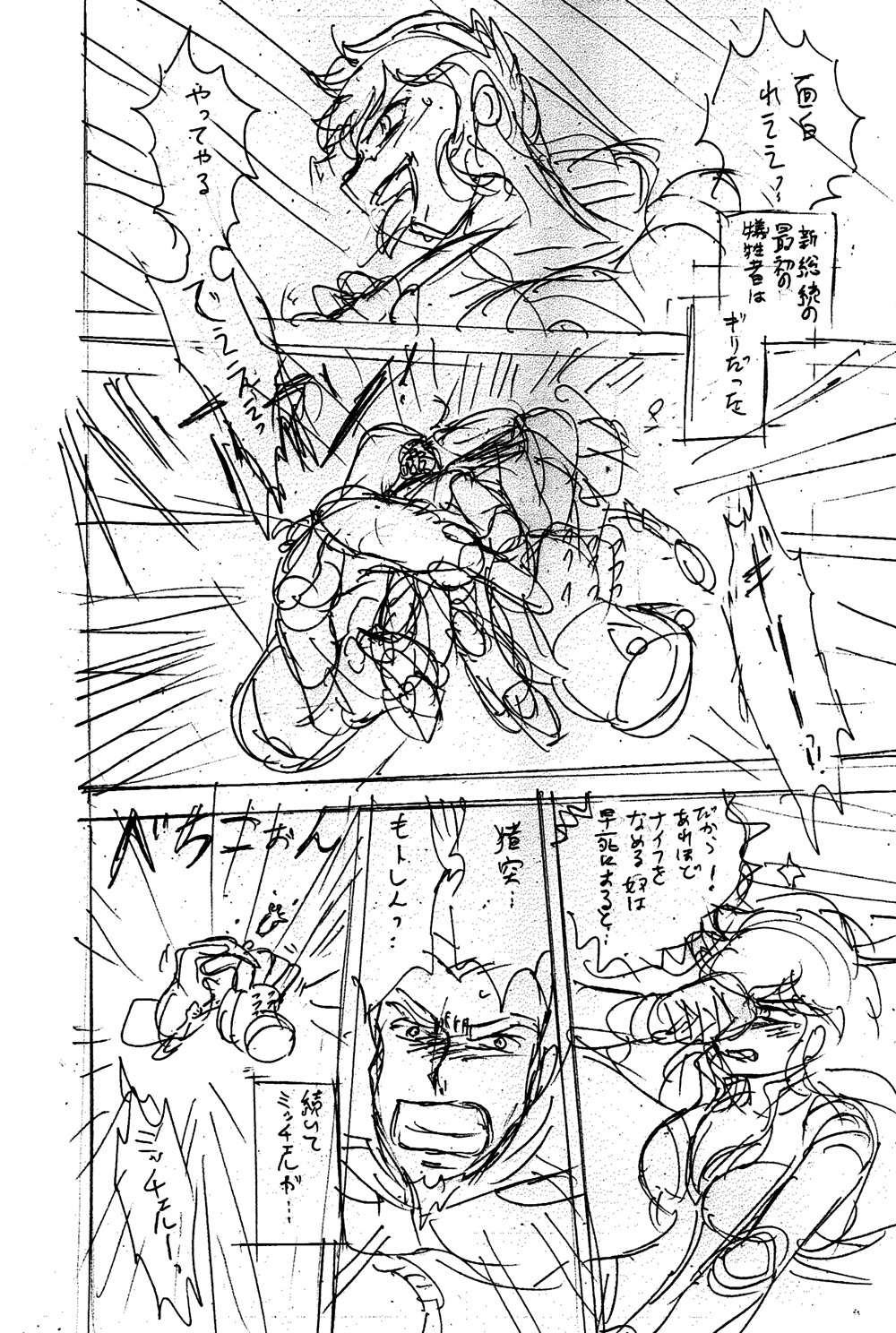 …え~と、と、それでなんで切っちゃったかというと、ネーム中に「でたらめなパロディとはいえ、人気キャラの死ぬシーンをギャグにするのは、不快に思う方もいるのではないだろうか?」と、思ったから、なのです。