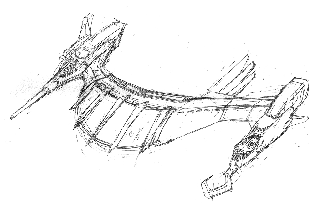 さて「機動戦士クロスボーン・ガンダム ゼーロイバー」は、お待たせしました、2話「ドラッケン・フォールの人々」を掲載。いかがでしたでしょうか?ドラッケン・フォールとはなんぞや?といえば、彼らの母艦の名前。では、なぜドラッケン・フォールなのかといえば…(ココで最終ラフ画登場)
