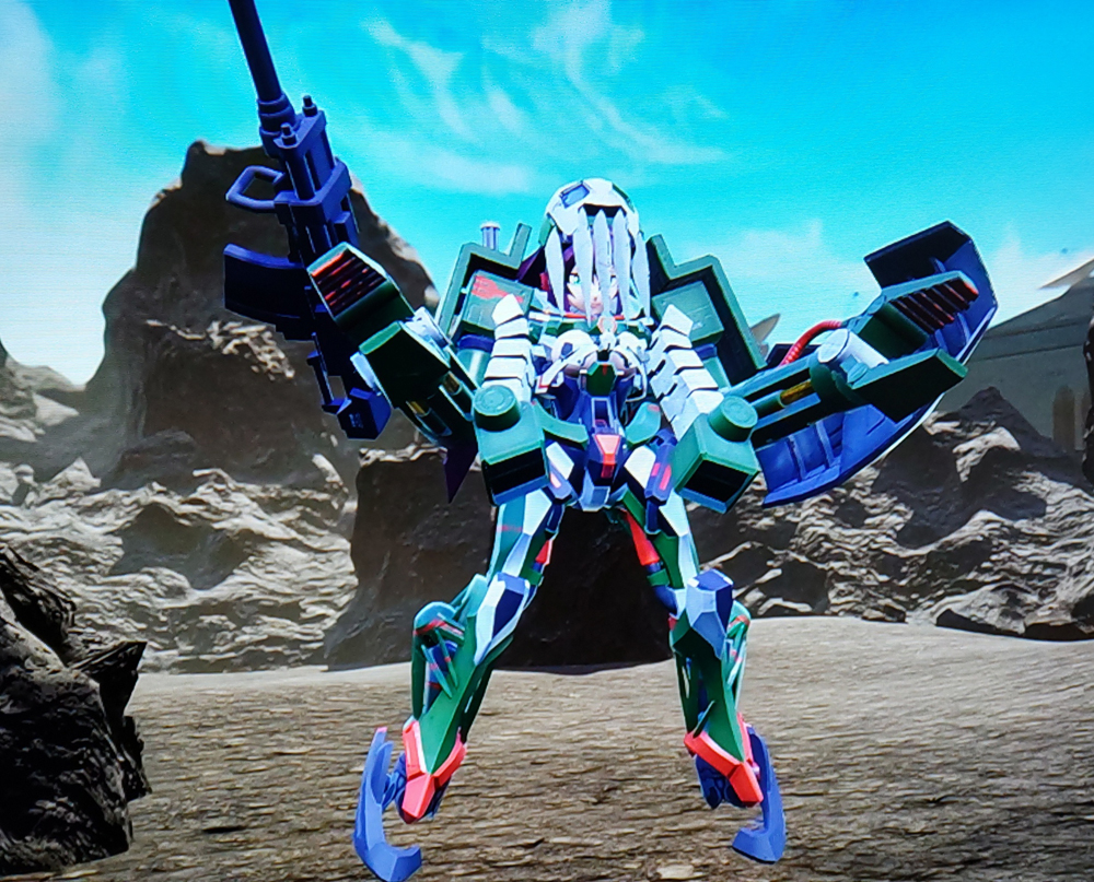 で、ジークアクスのパーツが大量に来た。この機体のパーツはだいぶ、そそりますね。大分シルエットが人間に近い。の、なら強化外骨格風にできないかな~?と思ったのがこれ。
